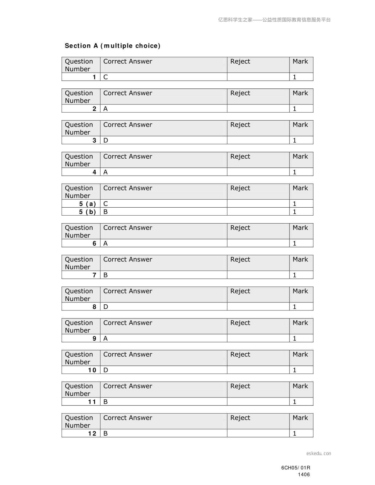 A-level Edexcel2014年6月化学真题答案Unit-5-(6CH05)01R
