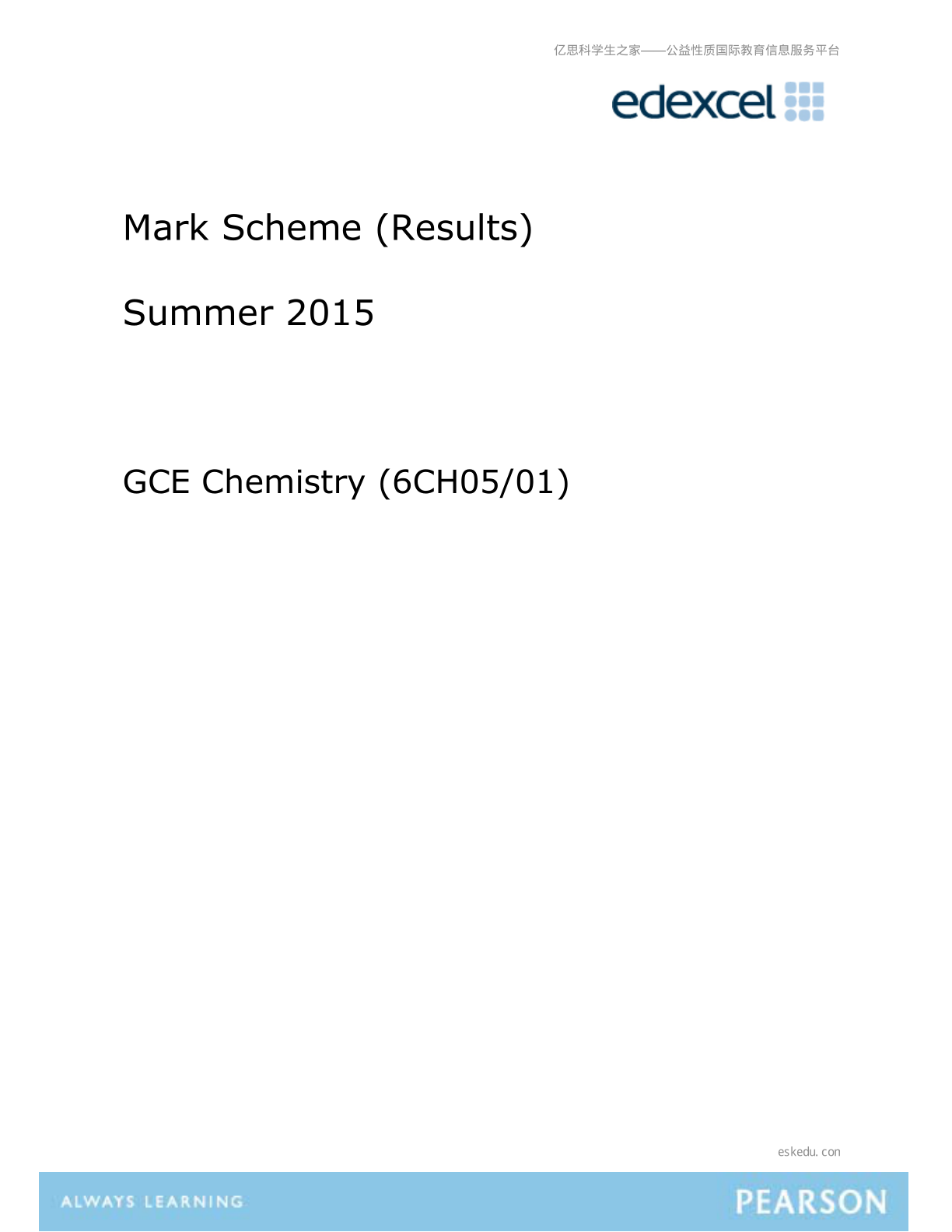 A-level Edexcel2015年6月化学真题答案6CH05_01